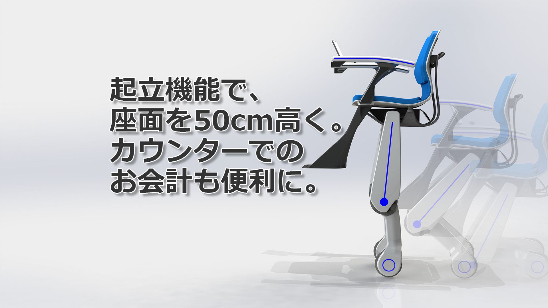 二輪での起立機構を搭載し、約50cm高く立ち上がる機能